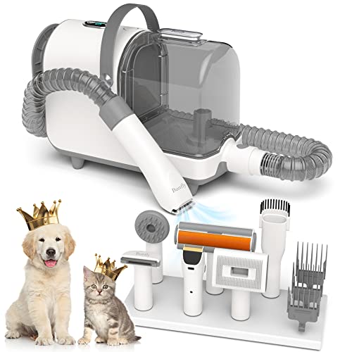 Bunfly Pet Clipper Grooming Kit & Vacuum Suction 99% Pet Hair, 6 Proven Grooming Tools, 2.5L Large-Capacity Easy Empty Dustbin for Pet Hair, Home and Car Cleaning-Silver